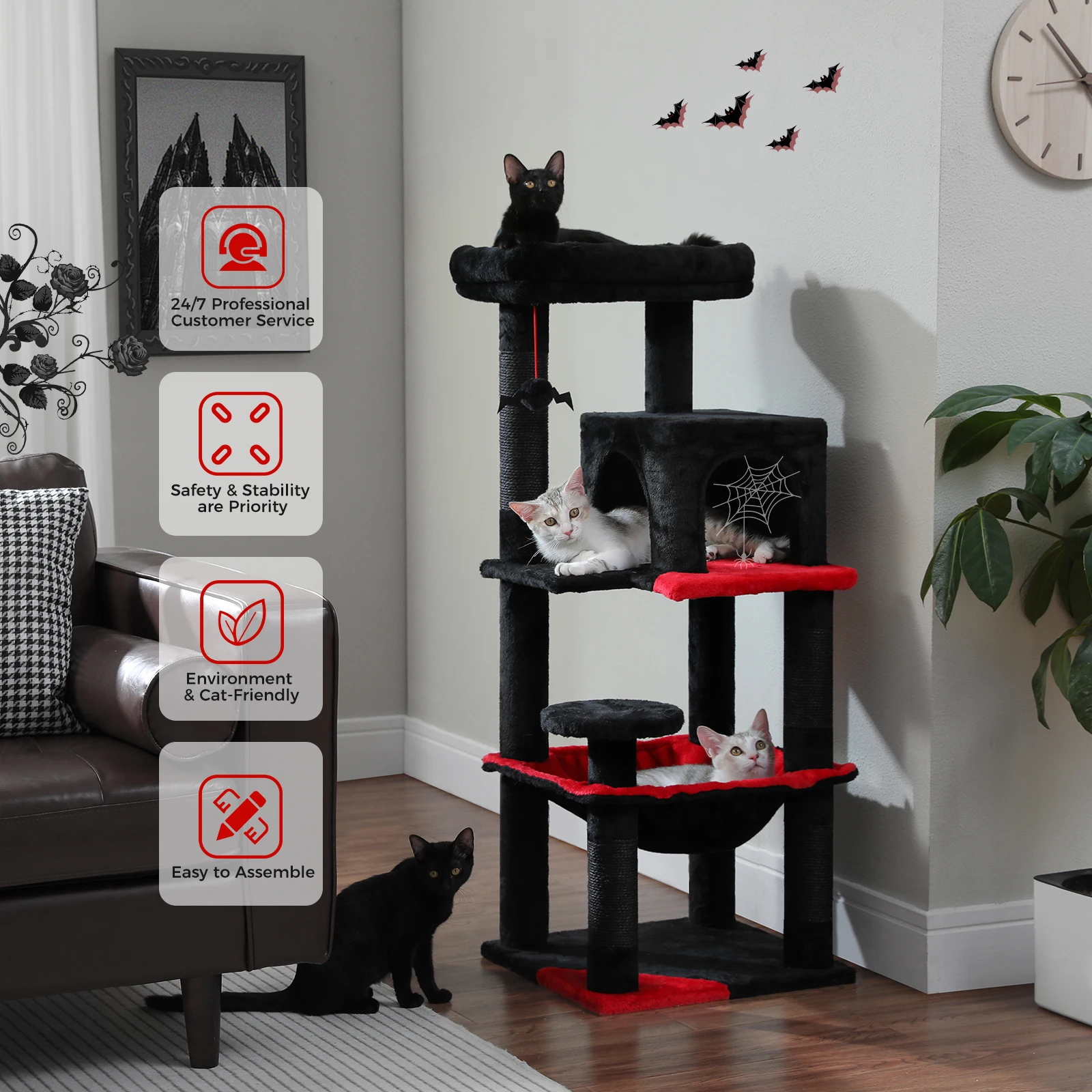 116cm 4-Tier Gothic Cat Tree Tower for Indoor Cats with Sturdy Metal Frame, Hammock, Condo, Perch, and 4 Sisal Posts in Black