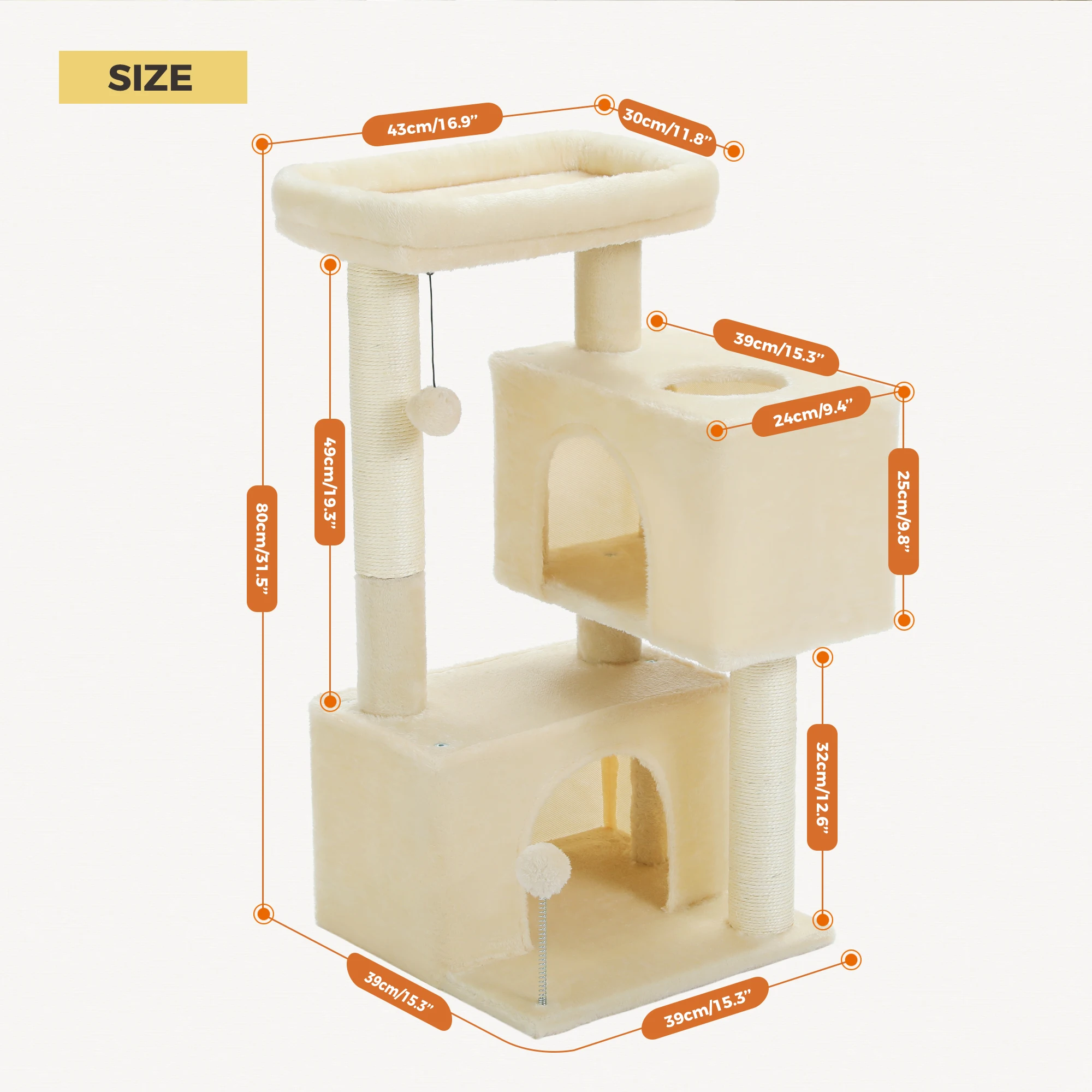 Features: detachable Top Perch,Joyful and Interactive Spring Ball,Double Spacious Condos