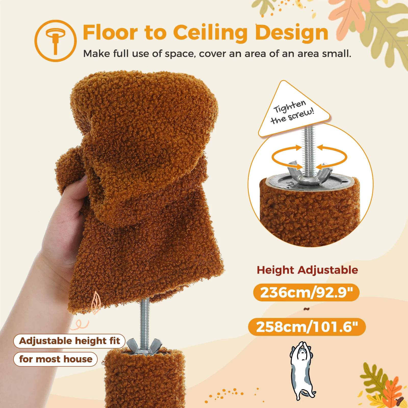 Adjustable Height Tall Cat Tree with Sisal Scratching Posts Spacious Condo Large Hammock Multi-Level Cat Tower Cat Toys Cat Accessories