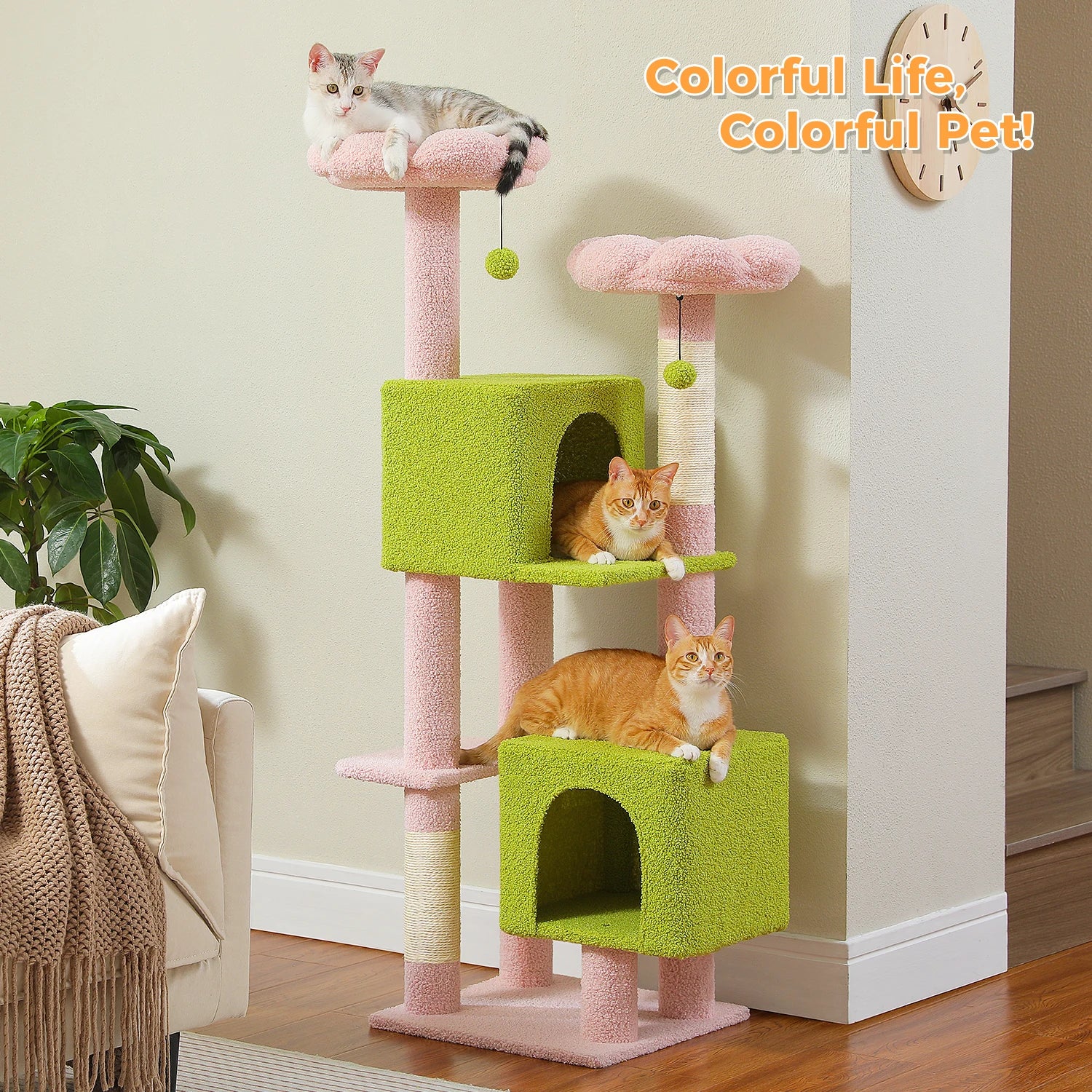 Cactus Cat Tree, 133cm Cat Tower for Indoor Cats, Cute Cat Tree with 2 Padded Perches, 2 Condos & 2 Scratching Posts