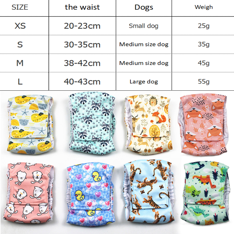 Adjustable Cartoon Animals Pet Dog Diapers Washable Males Absorbent for Dog Reusable Pet Panties Shorts Physiological Pants
