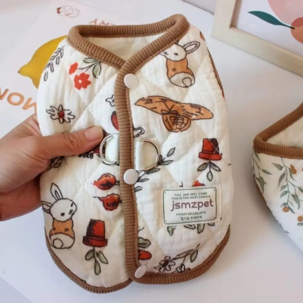 Cute Rabbit Printed Pet Dog Clothes Cat Clothes with Velvet Jacket Teddy Bear Coat Winter Warm Pet Supplies Puppy Clothes Vest