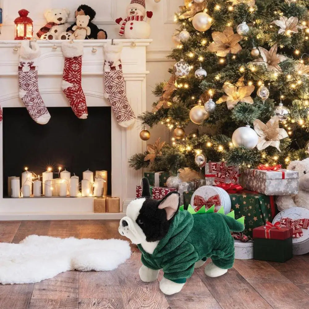 3.Long Serving Life: Give your pet the gift of warmth with our Dinosaur Hoodie made from thick coral fleece material. Stay comfortable and snug winter long with its soft and reusable fabric.