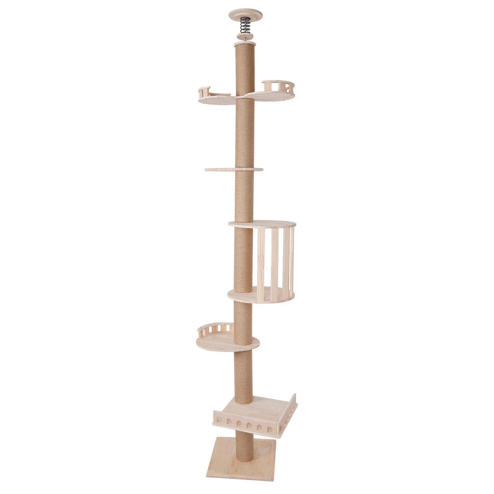 Durable 5-Tier Cat Tree with Scratching Posts, Wooden Cages, and Climbing Platforms for Cats, Easy Installation, Safe and