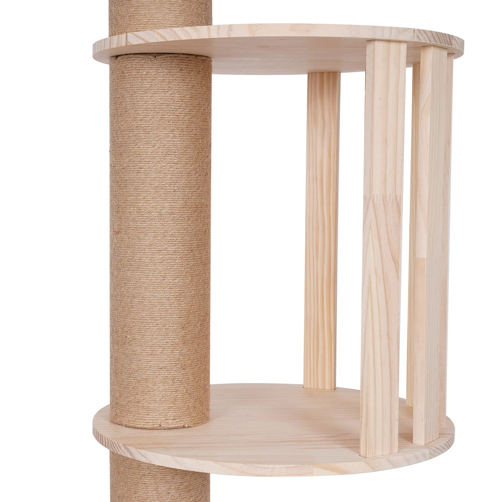 This cat tower is made of pine wood, paper tube, and hemp rope, which is both durable and safe. This multi-level structure is designed to provide innumerable fun and entertainment, keeping your cat active and engaged. With the scratching post, your cat can indulge in their instinct to scratch while keeping their claws healthy and sharp. Treat your beloved cat to this luxurious product and watch them revel in their paradise.