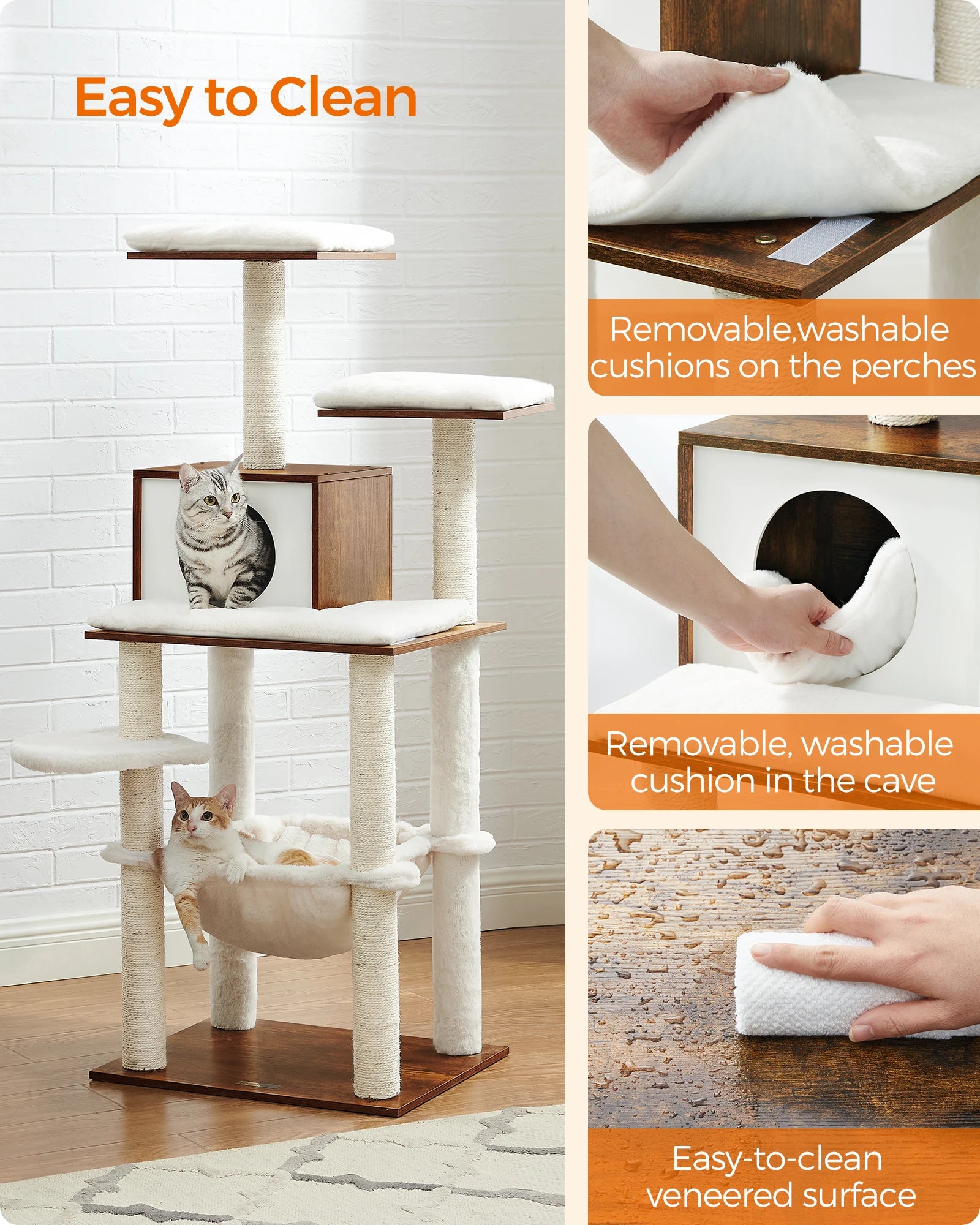 Feandrea Cat Tree, 54.3-Inch Modern Cat Tower for Indoor Cats, Multi-Level Cat Condo, Ultra-Soft Plush, Scratching Posts