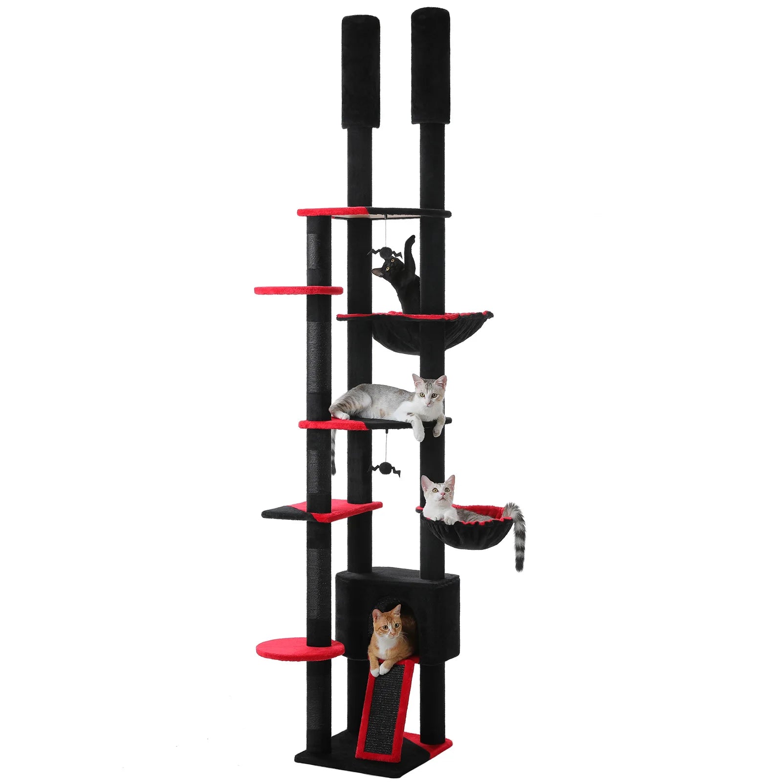 Floor to Ceiling Tall Cat Tree with Cozy Condo Hammock Sisal Scratching Post Adjustable Height Cat Tower for Indoor, 230cm-252cm