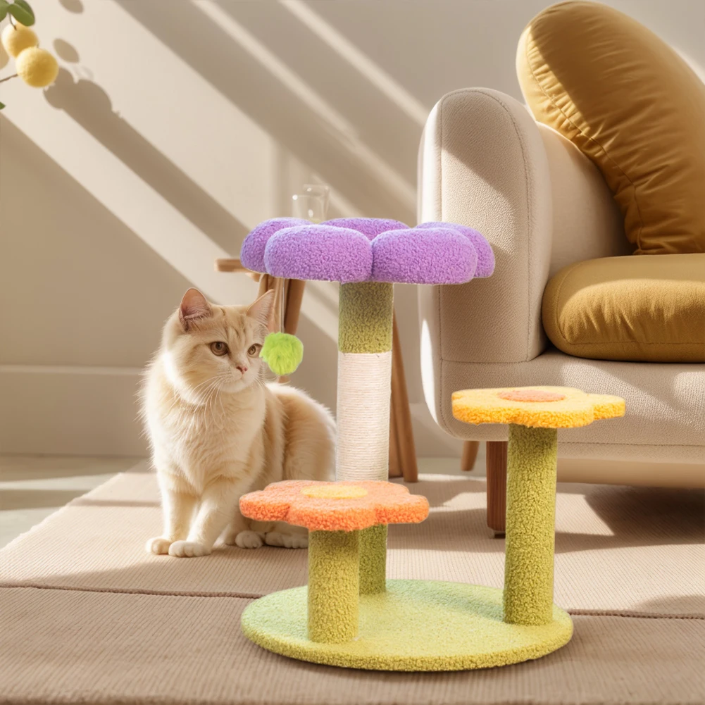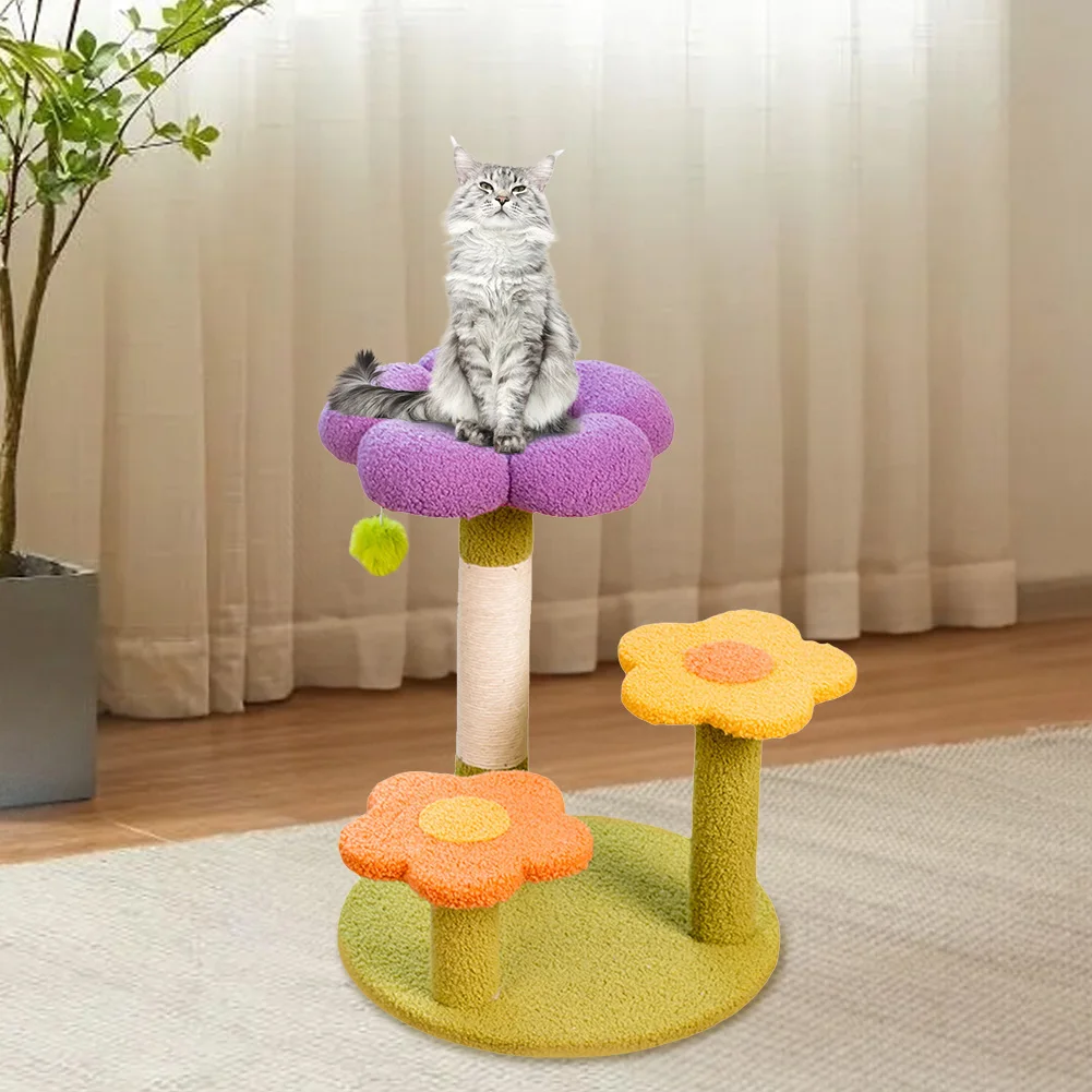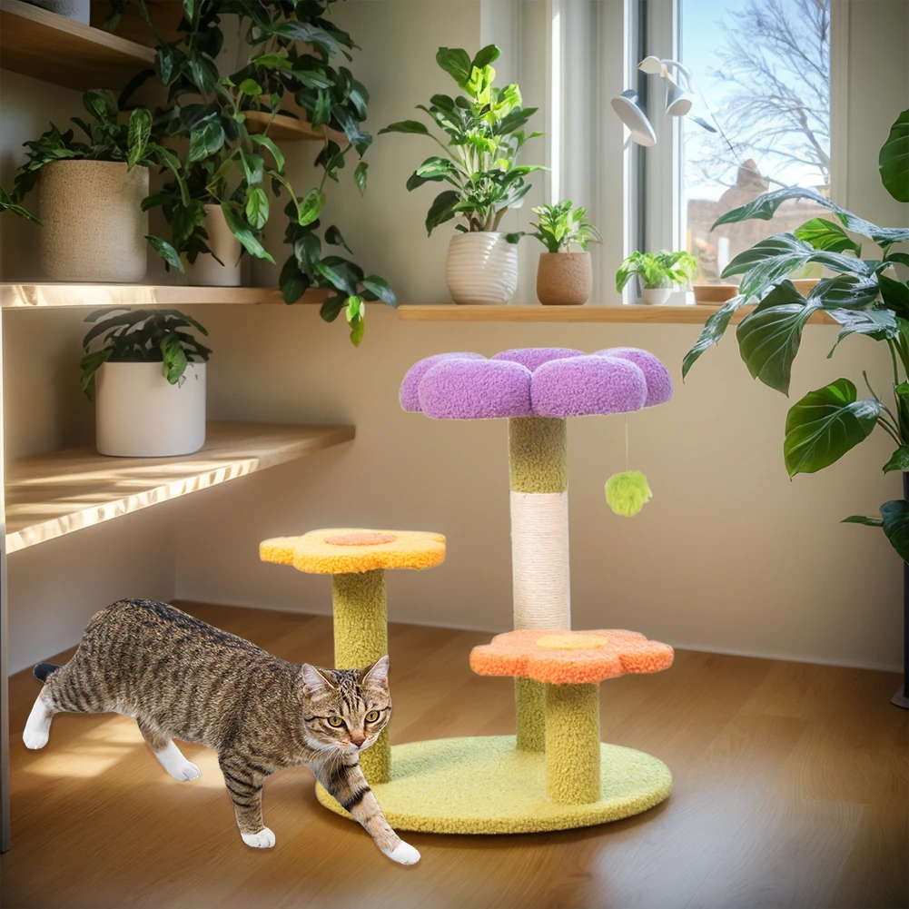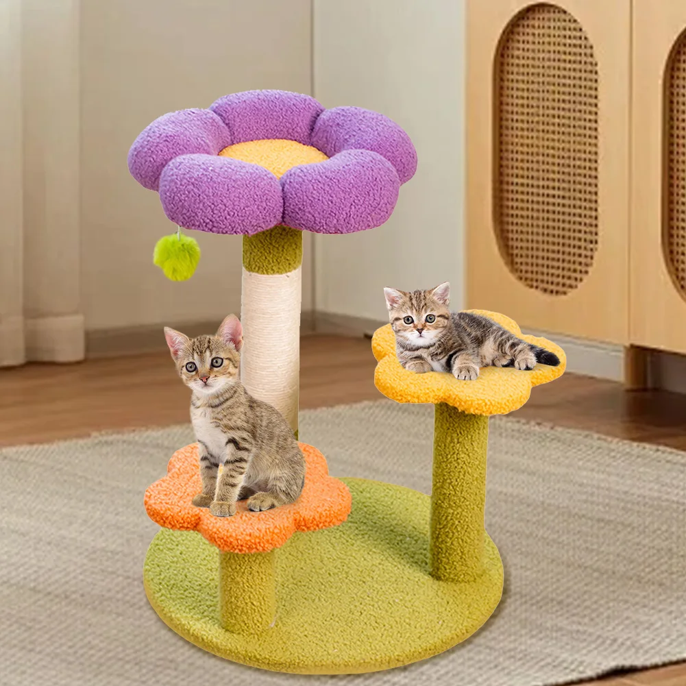 Flower Cat Tree Tower Cat Climbing Frame Sisal Wrapped Cute Cat Tree Multi-Function Interactive Cat Tower 3 Layer for Kittens