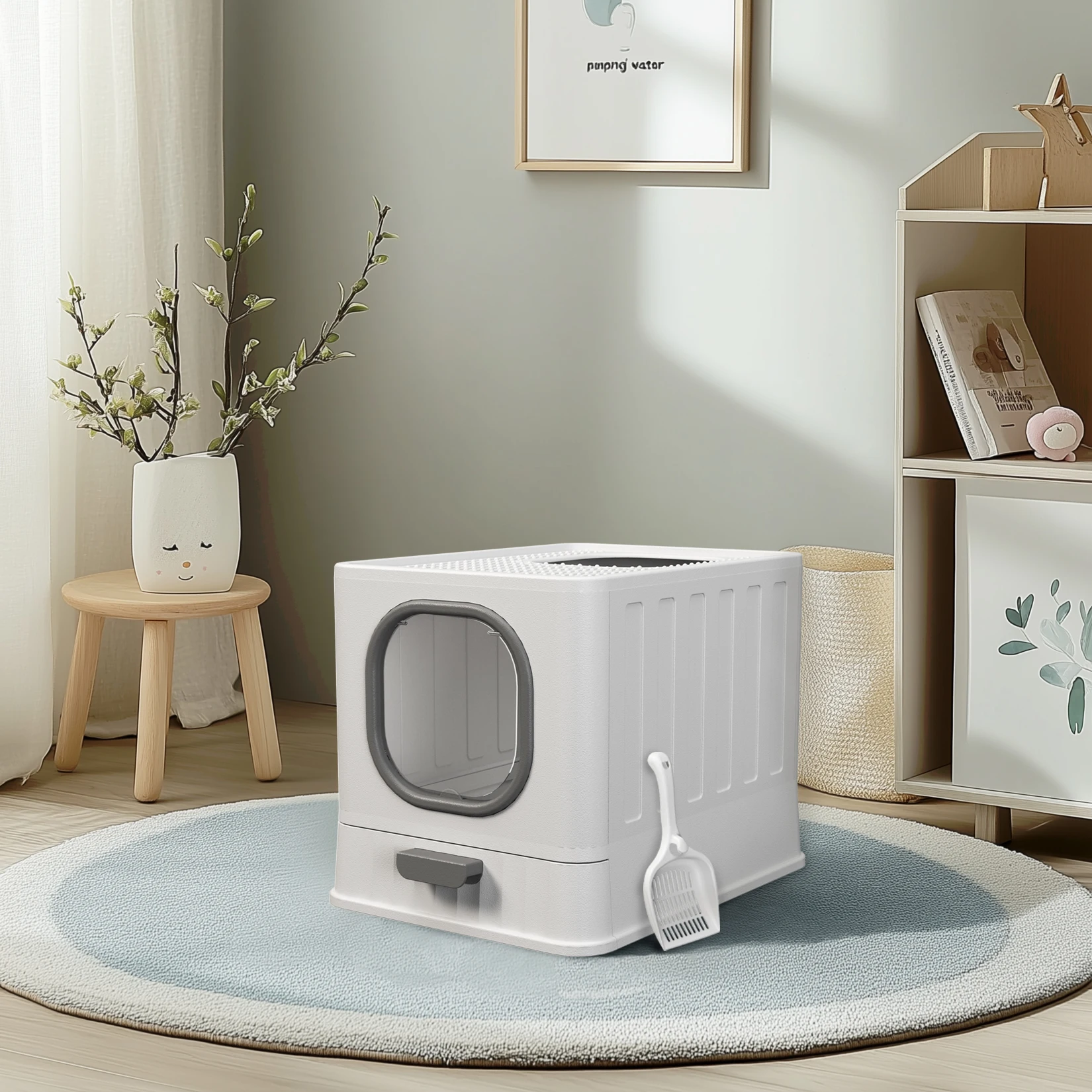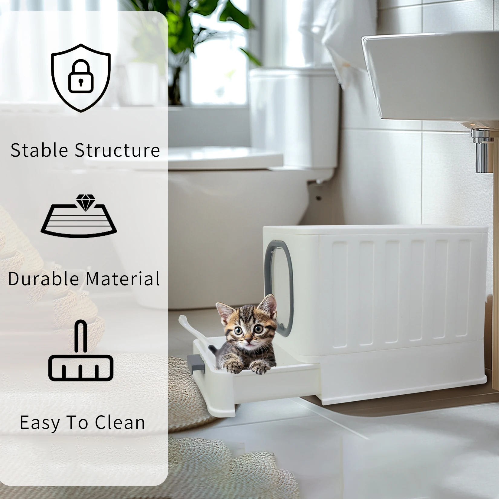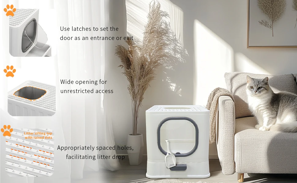 Convenient design litter box, keeping the rest of the house free from mess and odor.