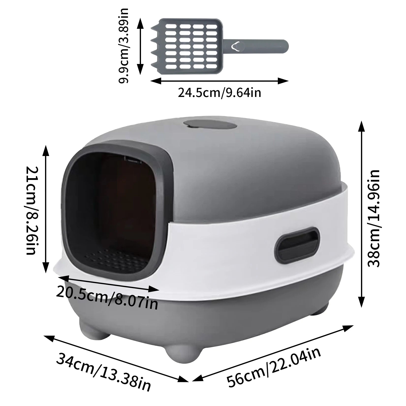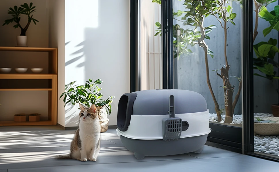 Hooded design offers cats a sense of privacy while containing litter scatter and odors.
