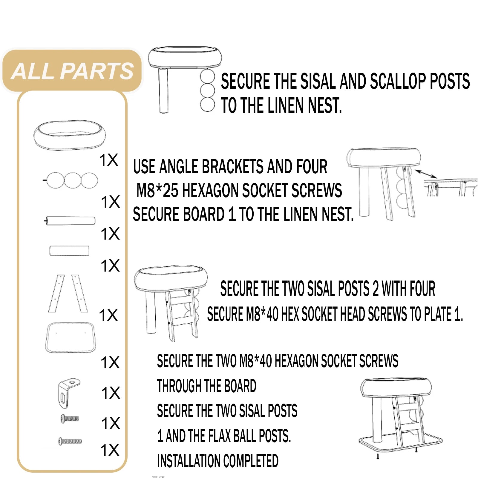 Assembly is simple with the included tools and clear instructions, making this cat climbing frame an instant favorite spot for your furry friend to scratch, climb, play, and relax.