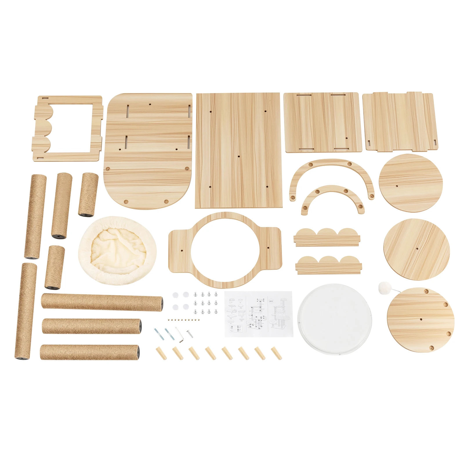 Multi-Level Wood Cat Tree Tower for Indoor All-in-one Pets Play Tree Climbing Jumping Toy Frame with Cushionss