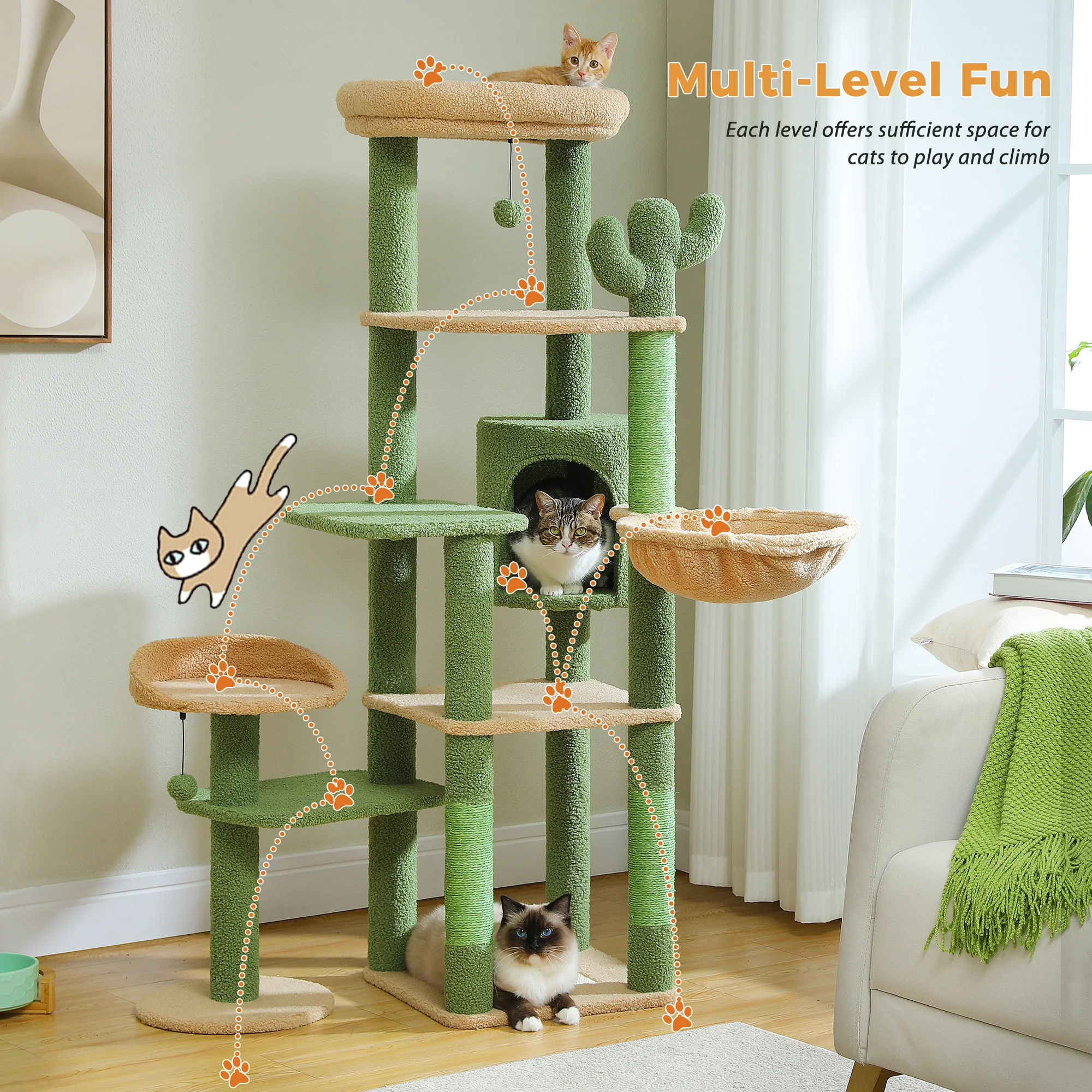[Unique Cute Cactus Design]: This cactus cat tree features natural green sisal and orange carpet. The cute cactus shape adds brightness and charm to your living room.