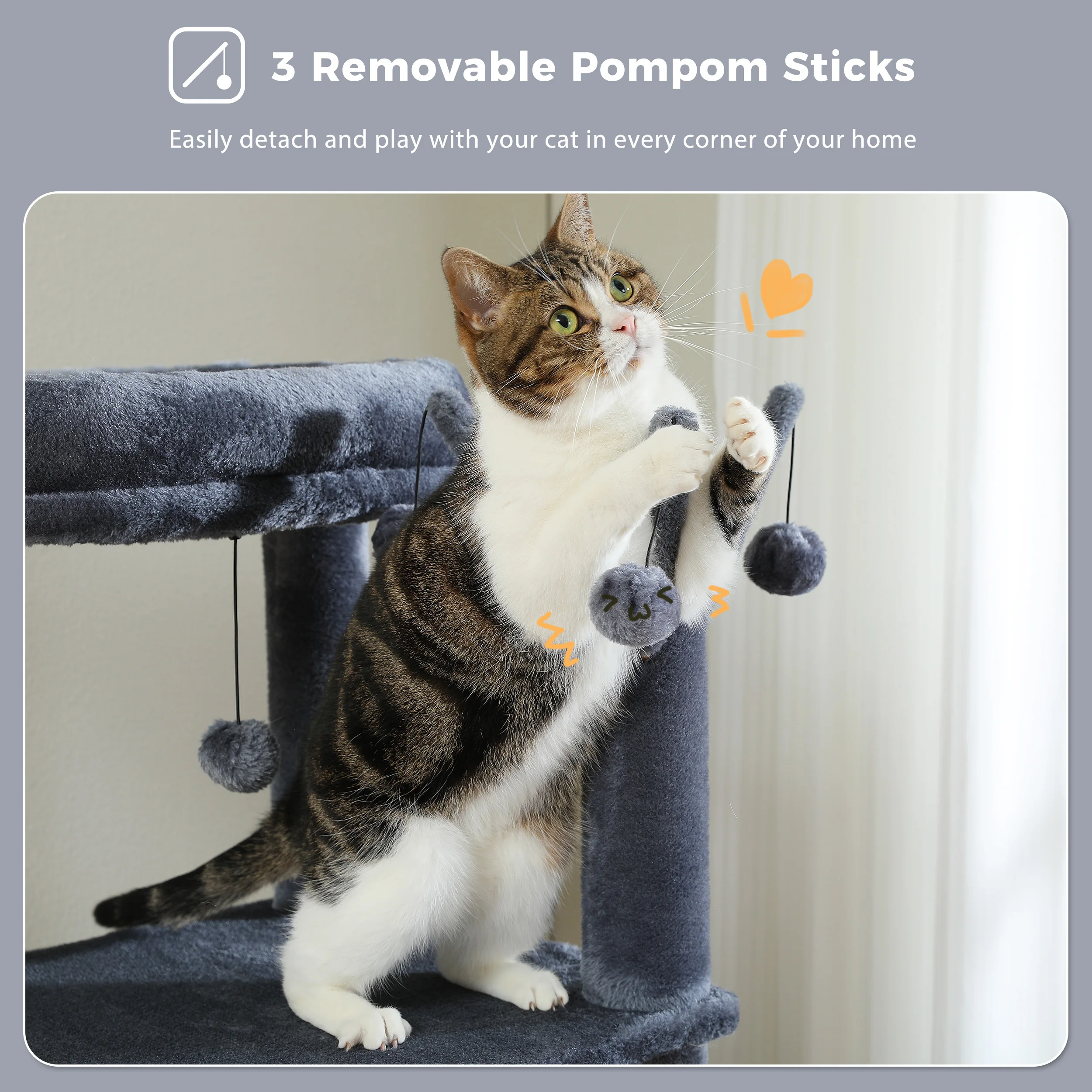 Cat Tree Tower with Anti-Toppling Device,Cozy Detachable Top Bed,Cute Round Cat Condo,Large Hammock,Replaceable Pompoms