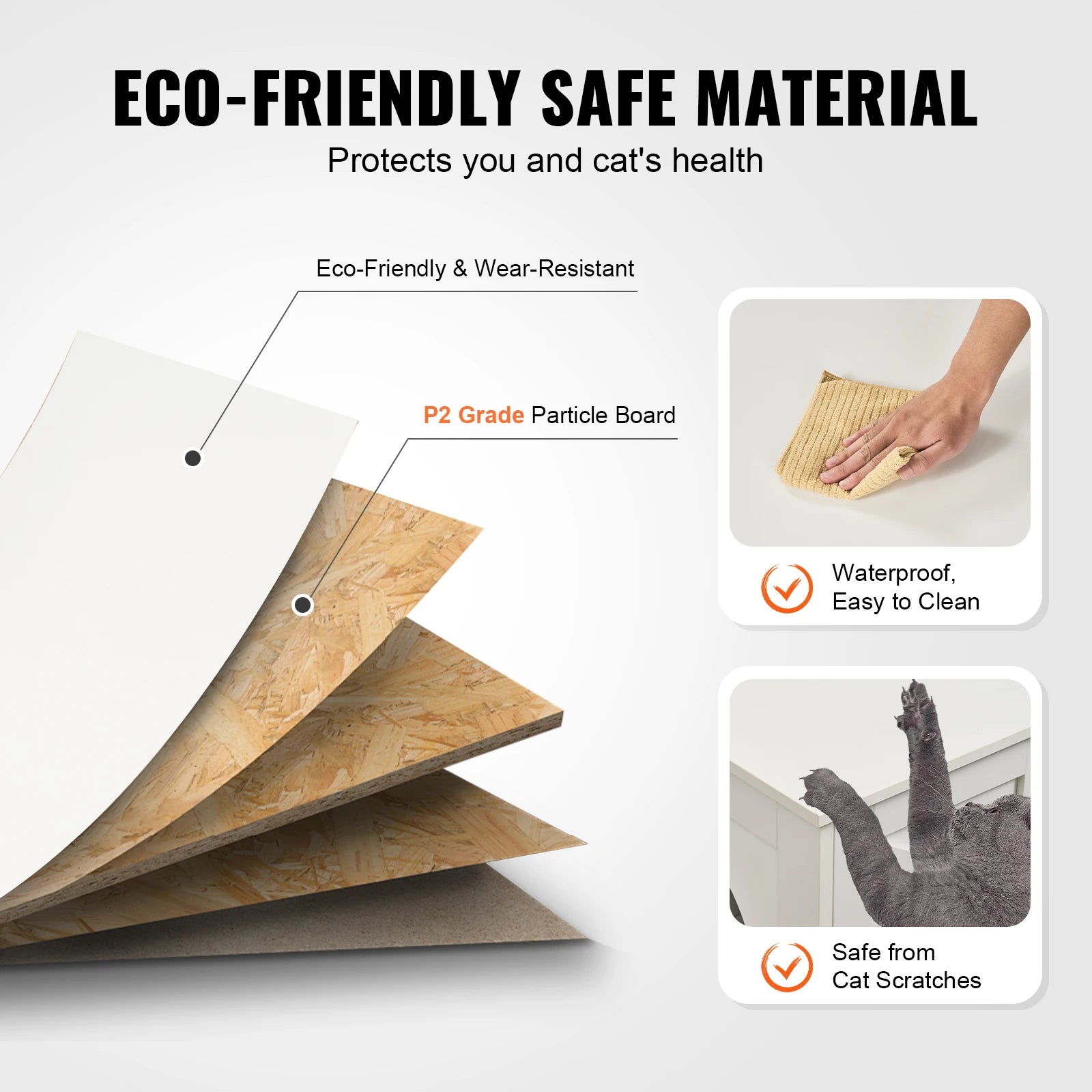 Made of P2 grade particle board, it is durable, ensuring the health of you and your pets. The high-quality finish is waterproof, and not easy to be damaged by cat scratching. Even cat urine or other stains can be easily wiped clean, greatly simplifying daily maintenance.