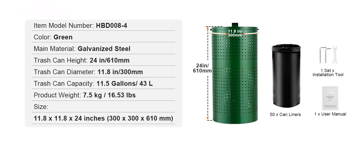 Thick, Quality Construction: Our pet waste bin is crafted from powder-coated galvanized steel, built to withstand the test of time. Say goodbye to fading, cracking, or rust—this beauty will add the perfect touch to any pet-friendly space!
