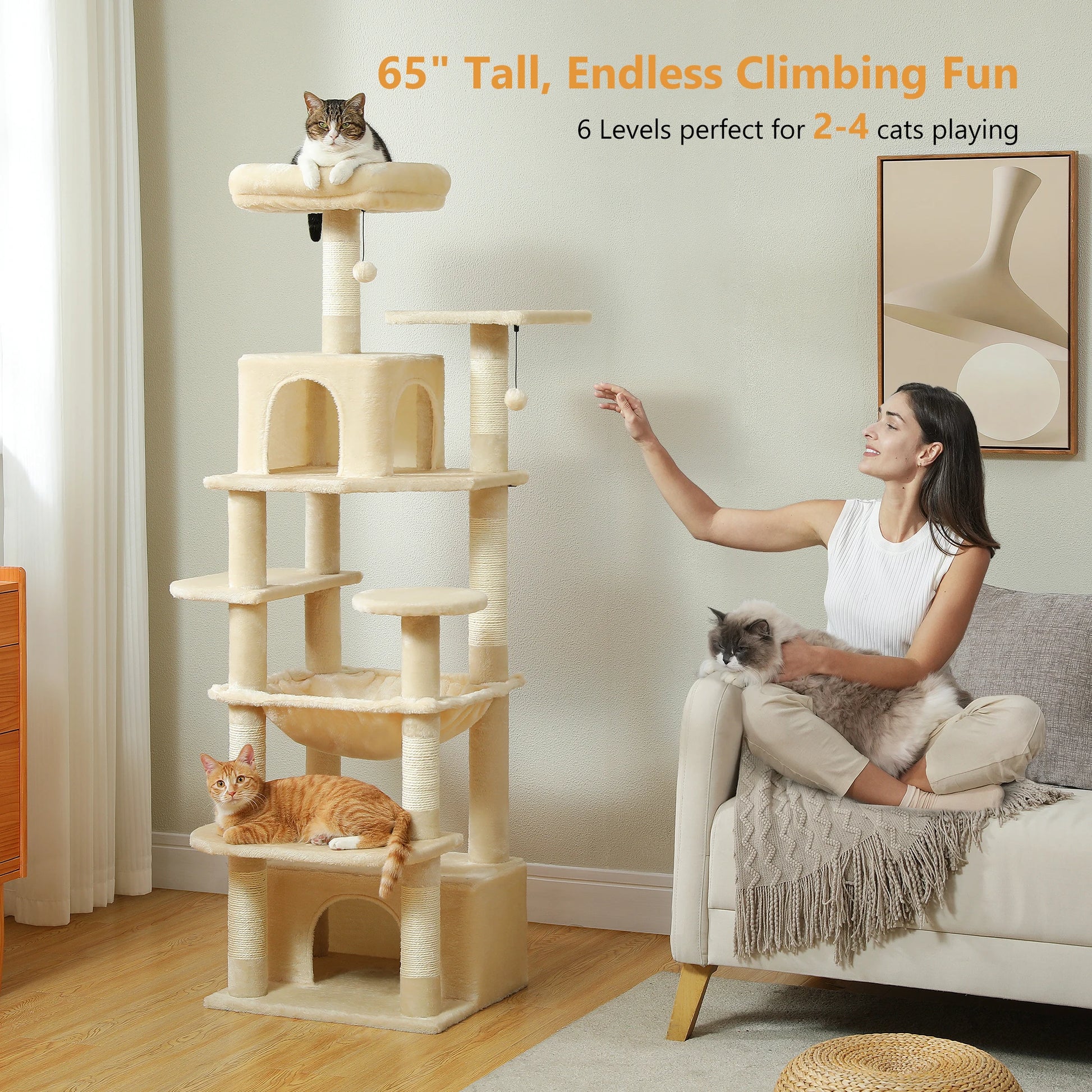 Tall Cat Tree with Scratching Posts Spacious Hammocks Large Condos Large Cat Tower for Indoor Cat Scratcher Cat Toys Accessories